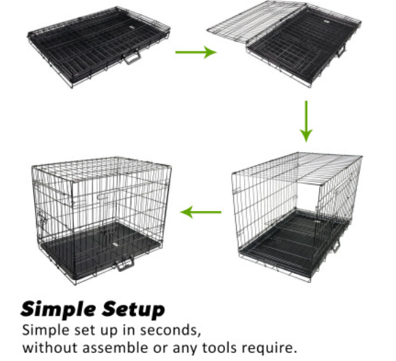 This collapsible wire dog crate are perfect for dogs that are constantly on the go as they require no assembly. They also set up in seconds without assemble or any tools require and fold flat for compact storage and travel.