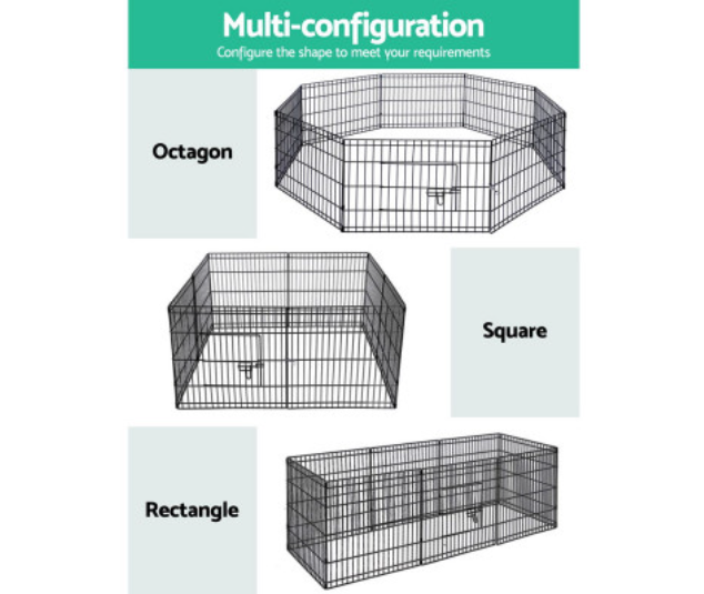 Made from durable powder-coated steel frames, the 8-panel Playpen can be arranged in a number of ways to suit your pets play habits. Whether its an octagon or a square pen, the Playpen easily configures with just simple adjustments.